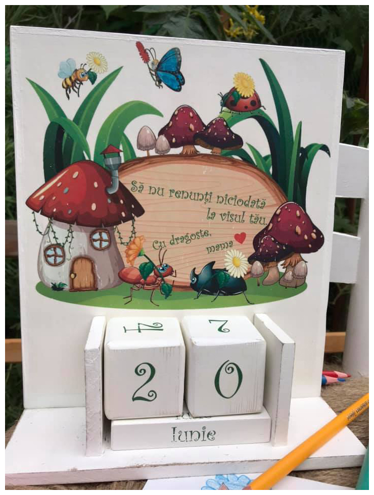 Calendarele sunt obiecte decorative realizate manual, potrivite pentru birou, living sau bucătărie. Sunt pictate manual sau prin tehnica transferului de imagine. Există mai multe tipuri de calendare: simple, cu ceas, cu eprubetă, cu suport pentru instrumente de scris și cu ramă foto. Finisajul are un aspect antichizat. Pe lângă calendarele prezentate pe site, se pot realiza calendare mai mici, personalizate cu siglă, telefon sau alte date ale firmei. Aceste calendare pot fi dăruite de sărbători partenerilor de afaceri.