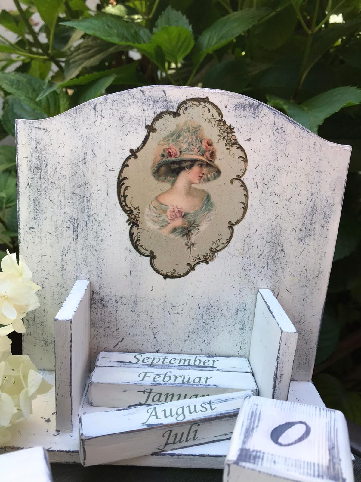 Calendar perpetuu handmade, realizat din lemn și mdf, model Portret, aspect vintage.