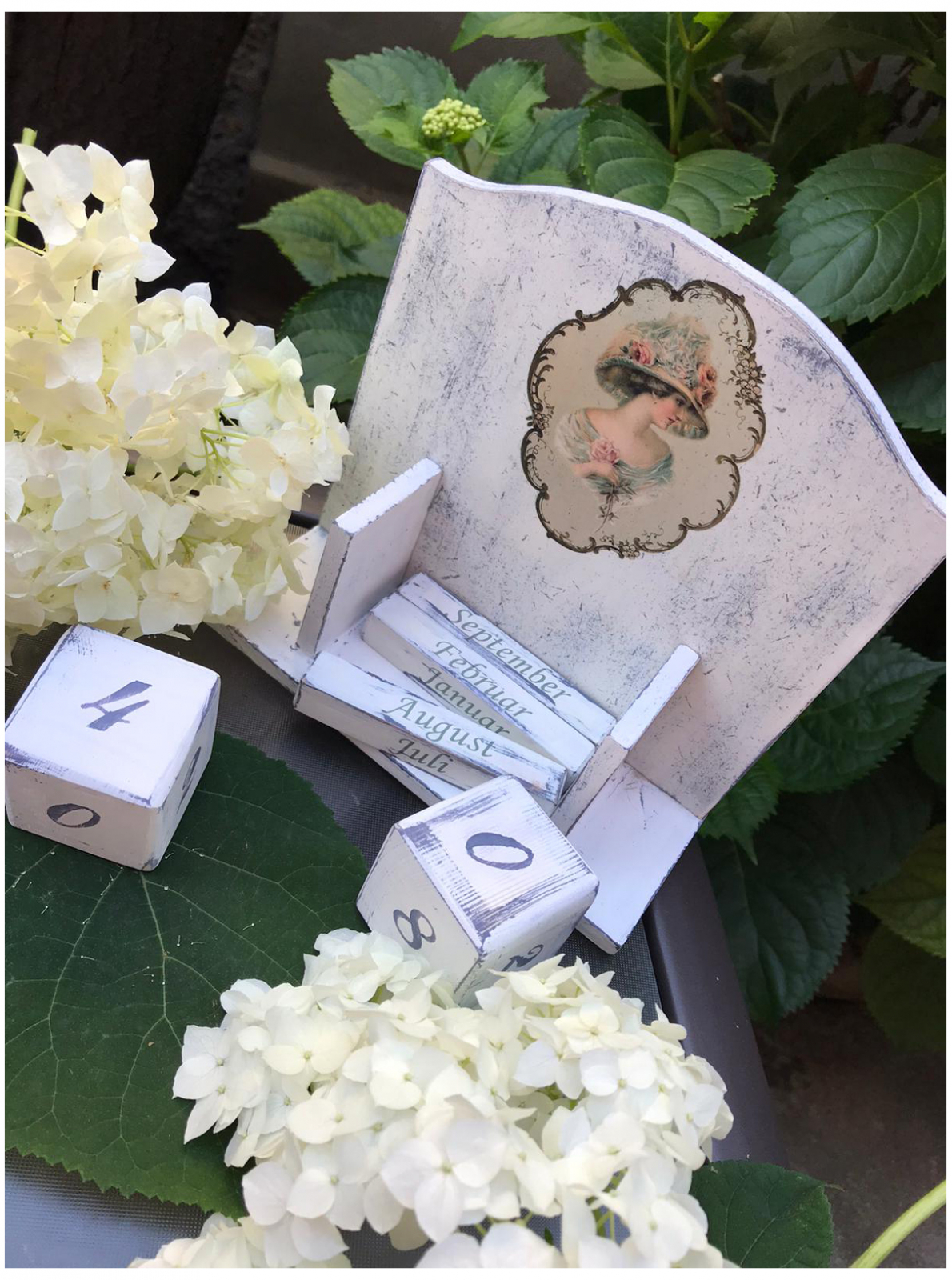 Calendarul este un obiect decorativ potrivit pentru birou sau living. Este realizat manual din lemn și mdf. Imaginea este imprimată prin tehnica transferului de imagine. Vopselurile sunt pe bază de apă. Calendarul este sigilat cu ceară. Ziua și luna se schimbă manual cu ajutorul pieselor din lemn. Datorită sigilării cu ceară, calendarul este plăcut atingerii, ușor catifelat. Fiind un obiect handmade, pot apărea mici diferențe între imaginile prezentate și produs.