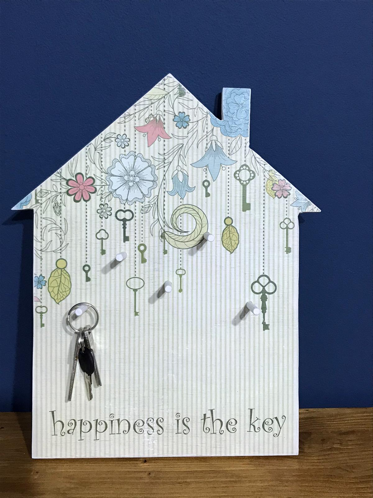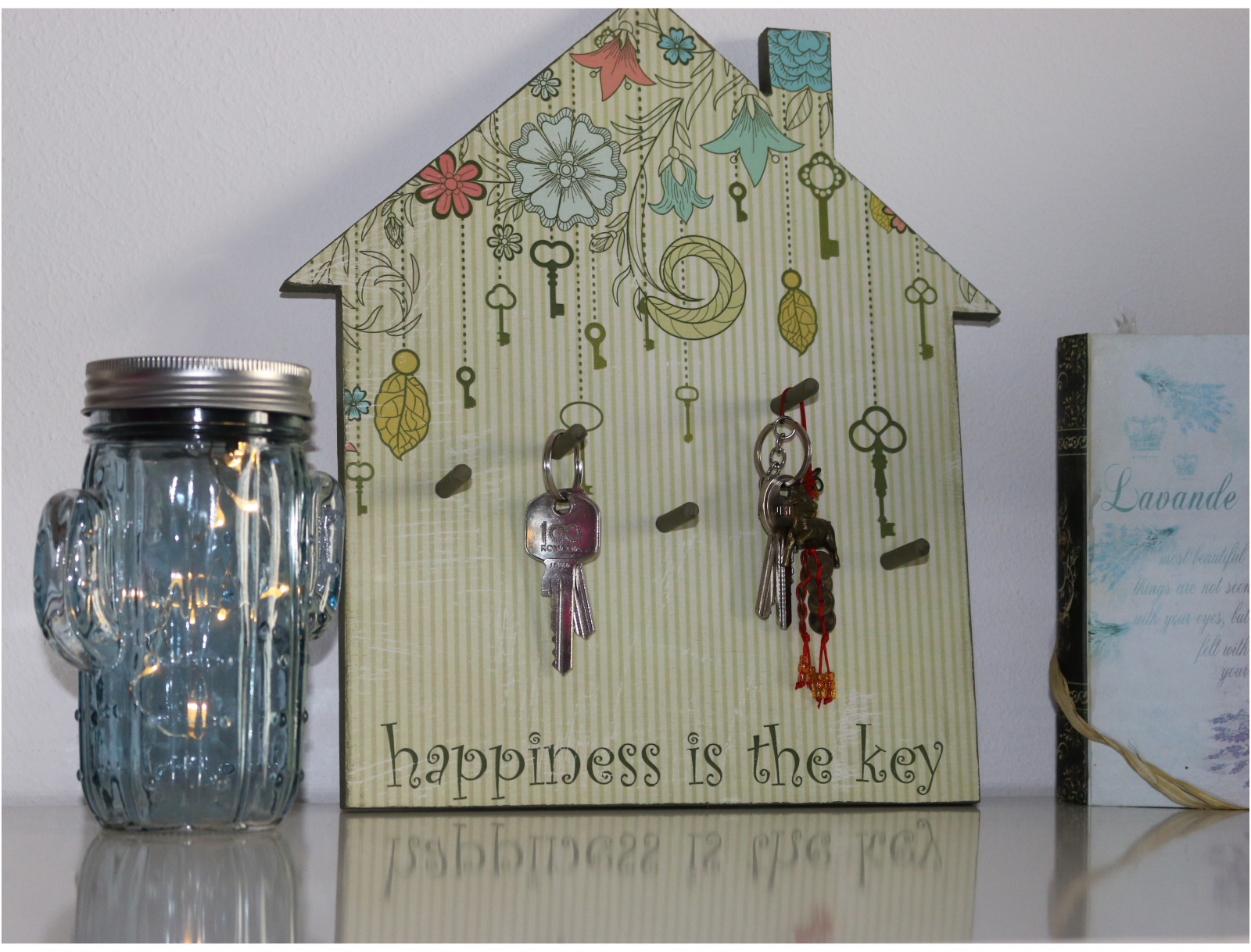Suportul pentru chei este un obiect decorativ, potrivit pentru hol, în zona de intrare în casă. Este realizat manual din mdf. Imaginea este imprimată prin tehnica transferului de imagine. Vopselurile sunt pe bază de apă. Suportul este sigilat cu ceară. Datorită sigilării cu ceară, suportul este plăcut atingerii, ușor catifelat. Fiind un obiect handmade, pot apărea mici diferențe între imaginile prezentate și produs.