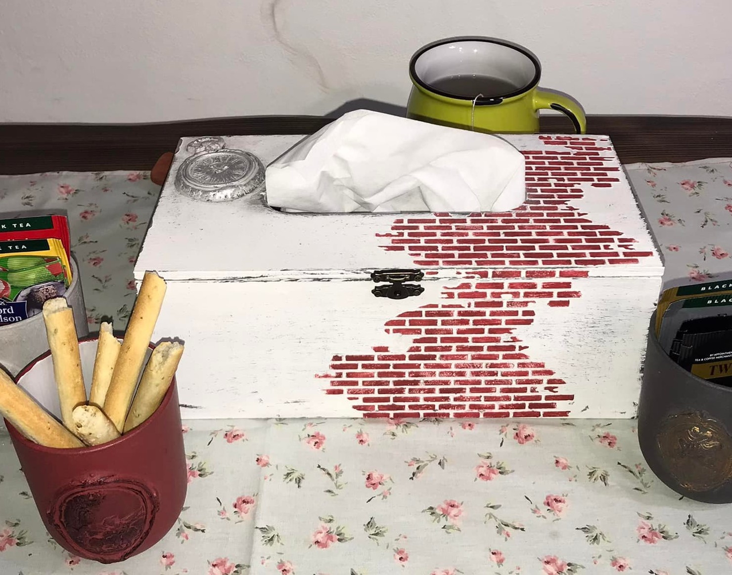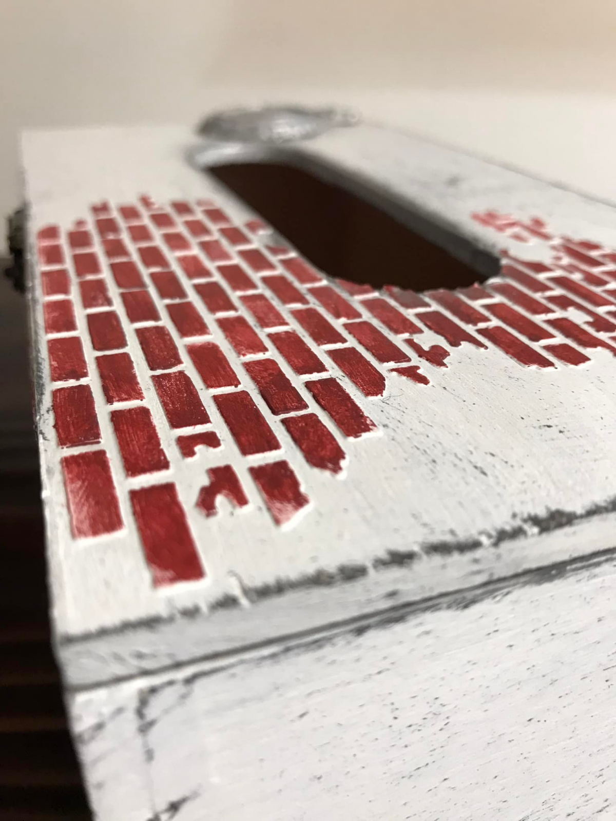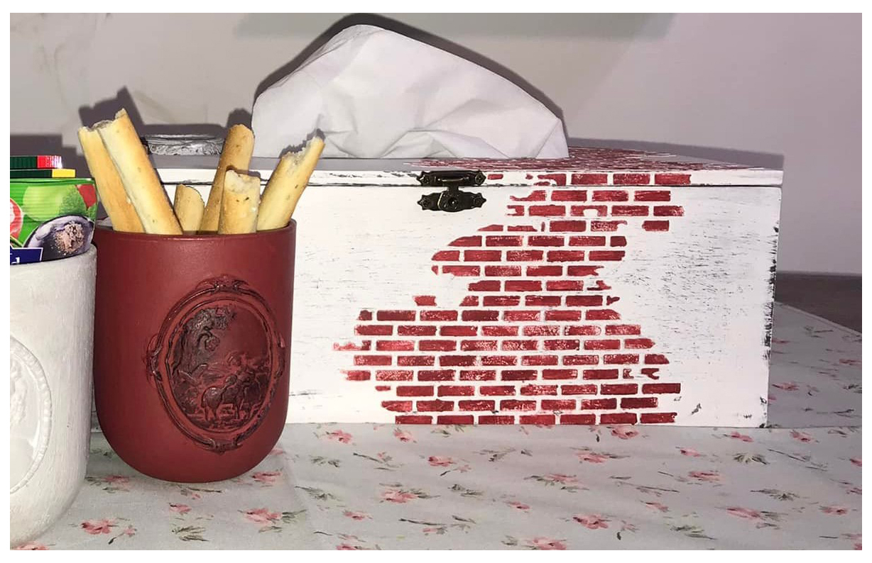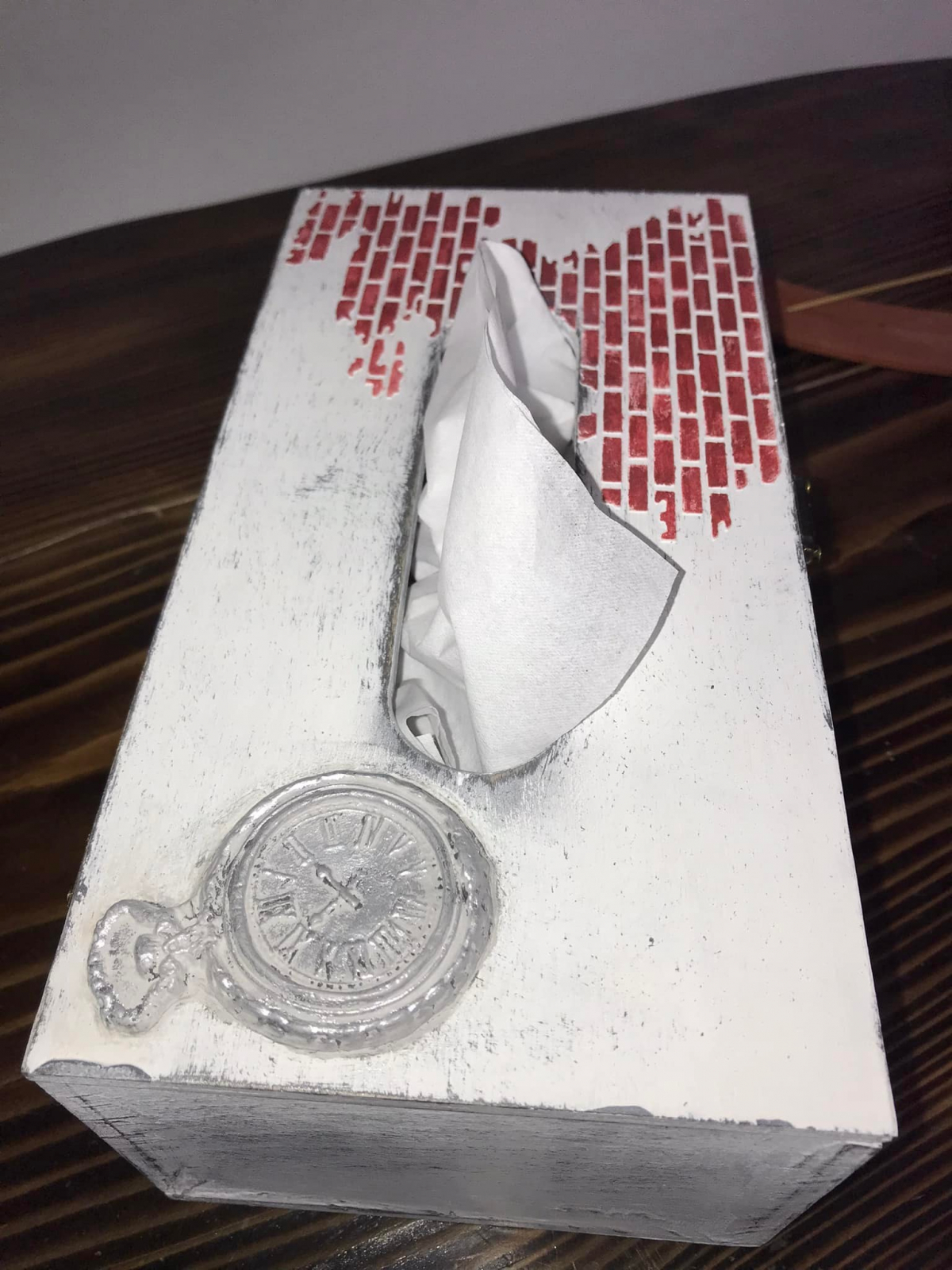 Suport pentru șervețele cu modele 3D realizat manual, aspect vintage.